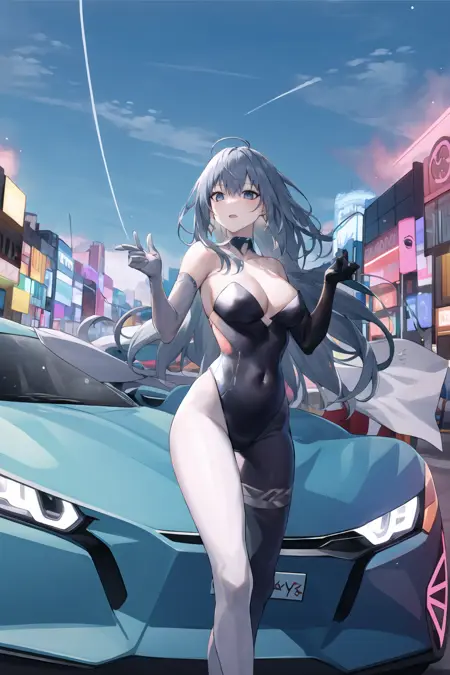 RQueen, WCar - 用于让提示词生效。WCar 会让画面更可能呈现她站在车旁的场景。