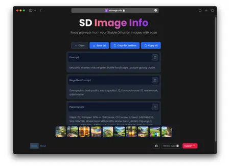 SD Image Info 是一个简单快捷的工具,可读取由 Stable Diffusion 生成的图像中的提示信息。