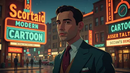 干净、粗犷的线条与鲜明、简化的色彩,融合了写实与略微风格化、动画化的美学风格。整体感觉精致而现代,细节丰富但略带夸张。此类艺术作品通常强调表情与环境的清晰度,运用强烈的色彩对比和清晰的轮廓线。光影精准,增强画面的锐利感,而背景虽细致,但复杂度低于超写实艺术,以突出角色主体。