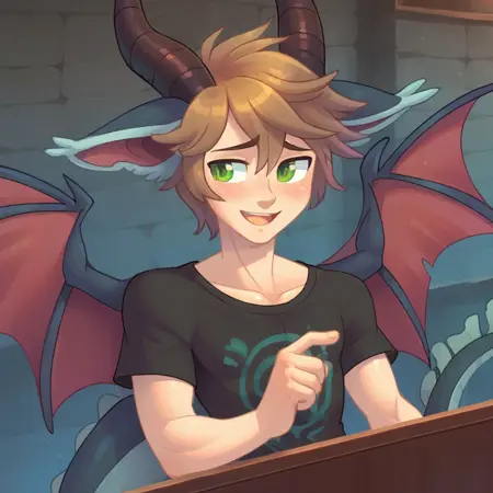 hybrid_scale, dragon ears, dragon wings, dragon tail, dragon horns,