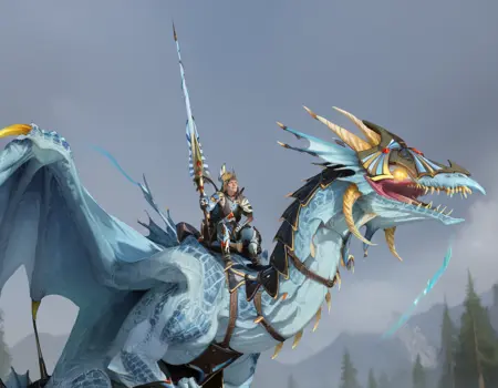 Imrik, pointy ears, armor, riding dragon, holding lance,