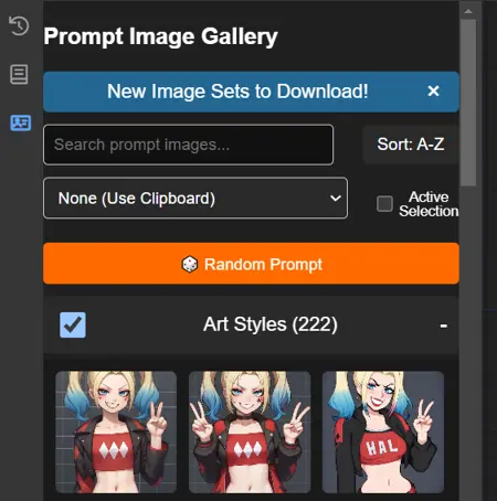Snazzy sidebar menu that holds images you can use for prompt building - click and go!