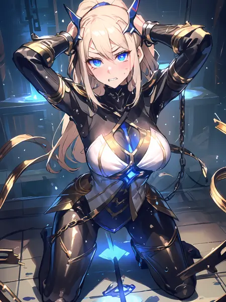 形态2(无头盔):alternative2,进化,发饰,蓝眼,白色护甲,中等蓝色裙,(蓝色剑);