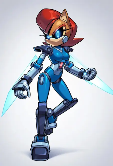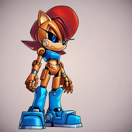 角色LoRA用于创建由蛋博士机械化改造的Sally机器人,源自Sonic Archie漫画中的Sally Acorn。这并非完美,装甲部分的肤色也未100%准确,但我认为目前的内容已经很不错了。