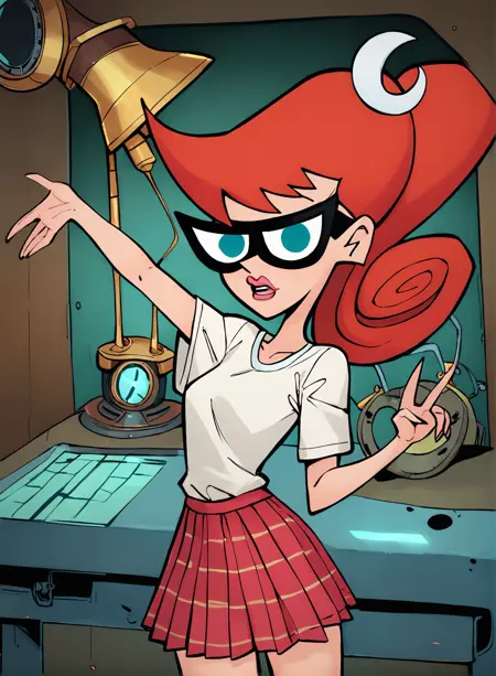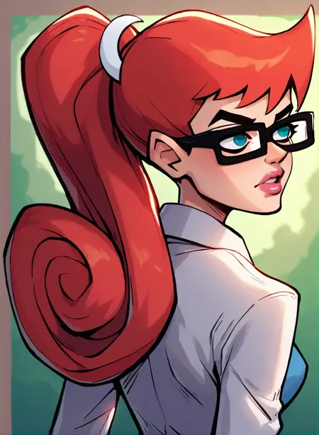 SusanTest,裙子,实验服,衬衫,黑框眼镜,星号\(符号\),黑裙,口红,蓝眼,红发,长发,眼镜,1girl,SusanTest