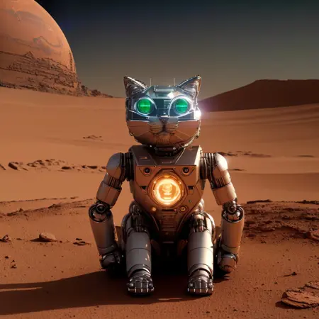 このEmbeddingは、猫を火星風の猫に変換します。プロンプトで「cat」と「Mars」などのキーワードを使用すると最も効果的です。