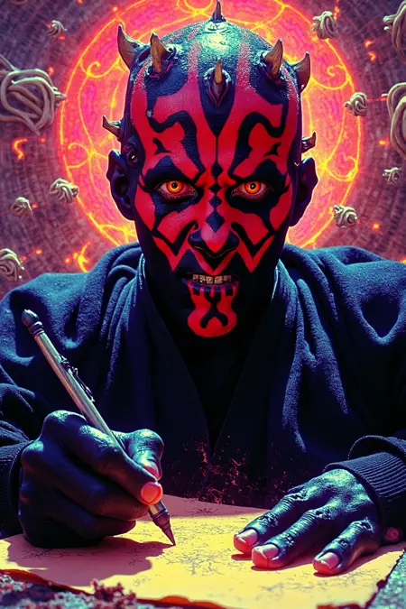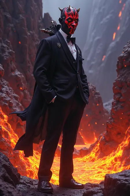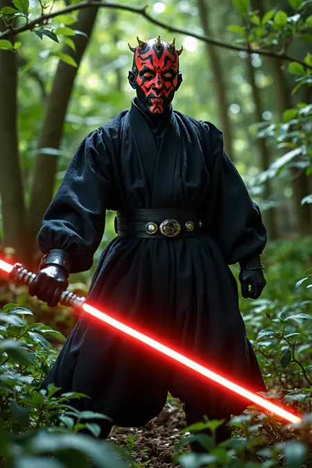 This was trained on darthmaul, but apparently just using Darth Maul as trigger gets results: