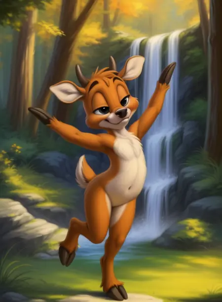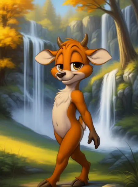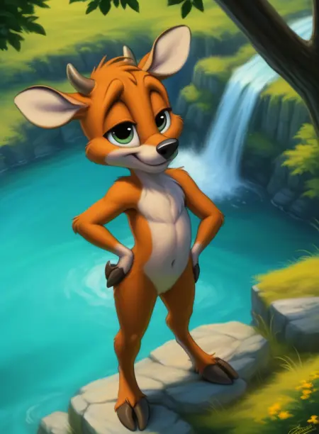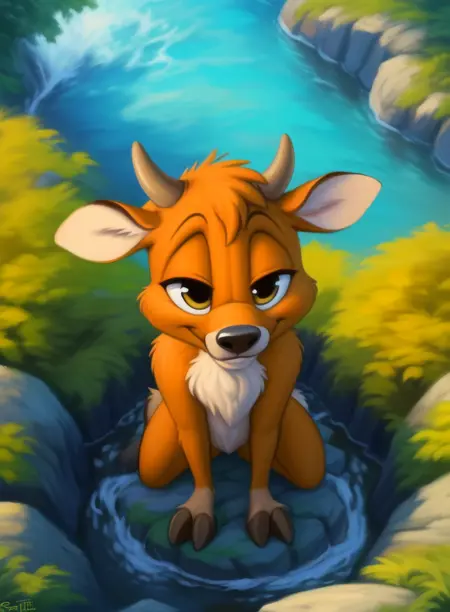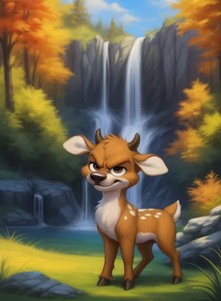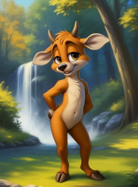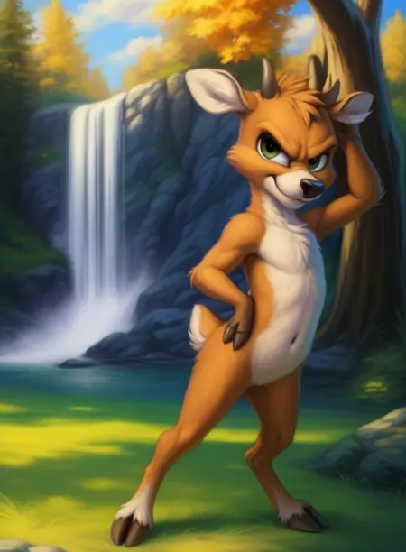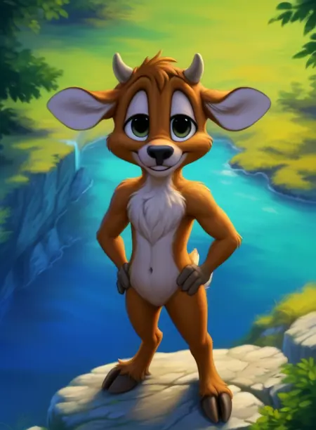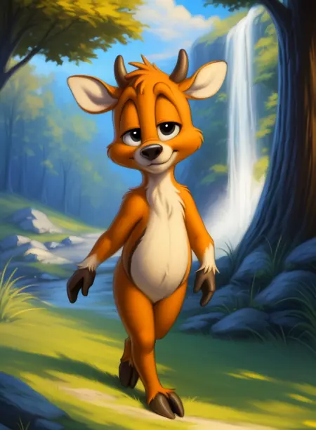 VinnieDeerLonTooAdv, Deer, chibi, brown fur, small horns, brown hooves, black nose,