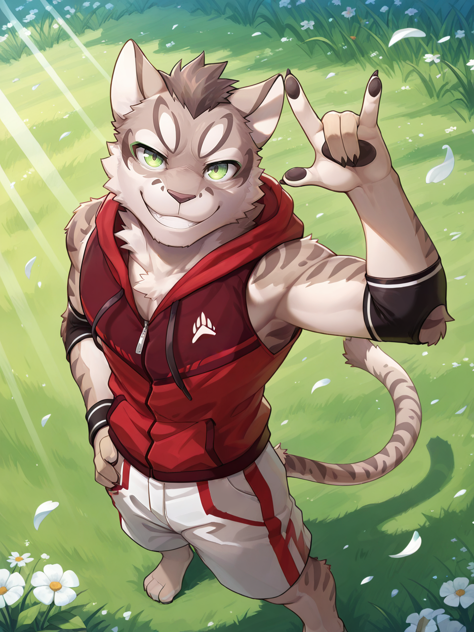 Outfit prompts: "sleeveless hoodie, white shorts" "Chinese clothing"