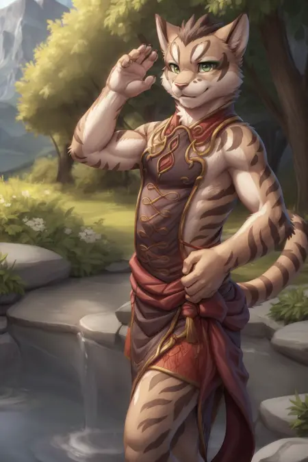 衣装のプロンプト: "スリーブレスのフードie, ホワイトショートパンツ" "中国風の服装"