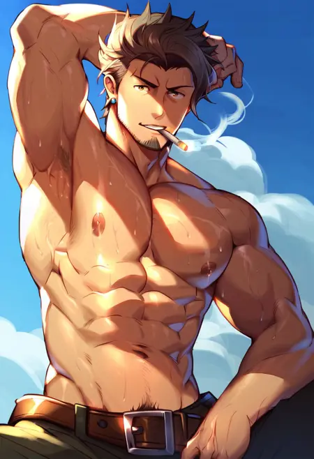 Other useful tags: 1boy, facial hair, brown eyes, brown hair
