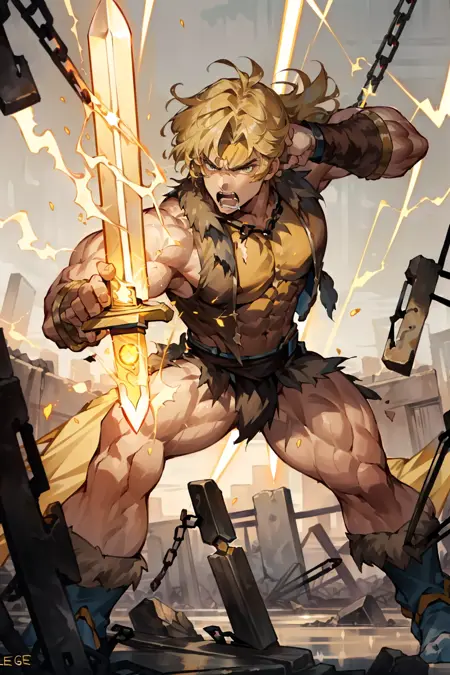 Activation word is "thundarr". The AI has no idea what a "sunsword" is, so you'll want to use "yellow lightsaber" or "energy sword". Also, you may have to put "beard" into your negatives because it keeps wanting to give Thundarr a goatee. You figure that one out. Good luck, have fun, and stay tuned for more 80's icons!