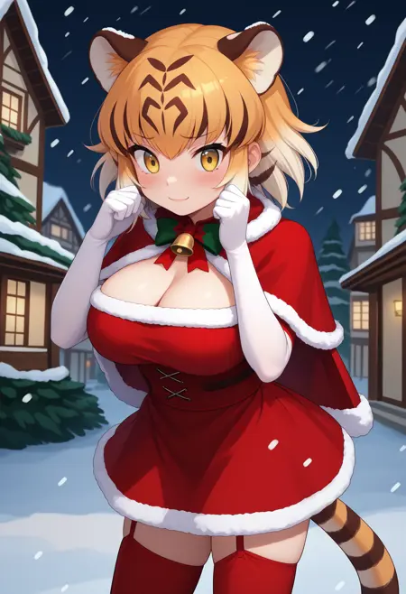 トリガー+外見: kft1ger, tiger tail, animal ears, extra ears, large breasts