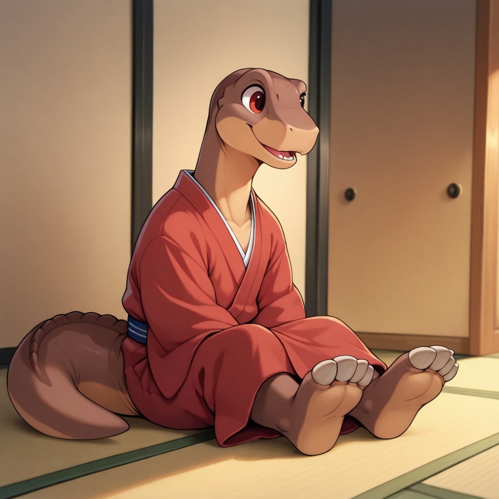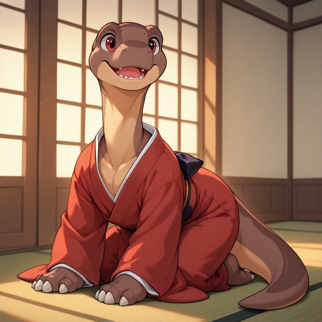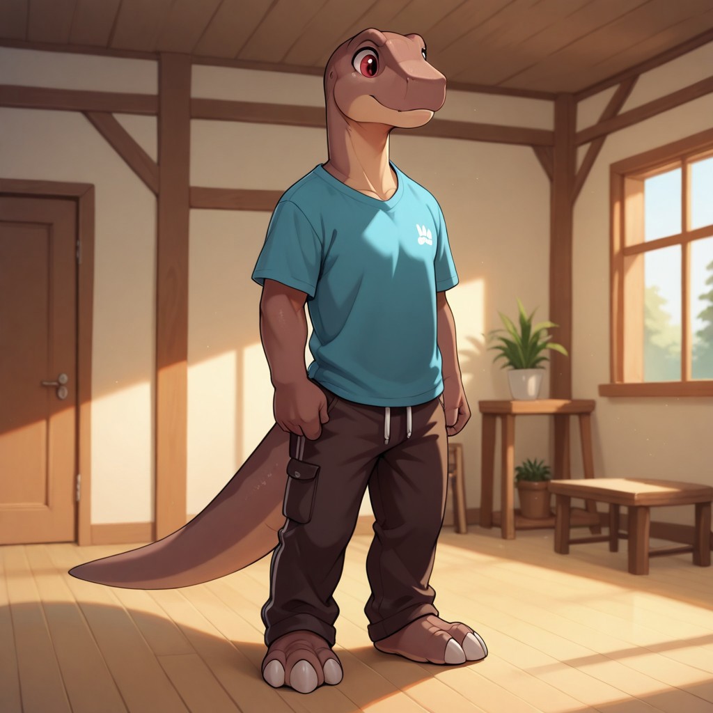littlefootlbtil, feral, male, Apatosaurus, scalie, dinosaur, sauropod, brown skin, red-brown eyes,