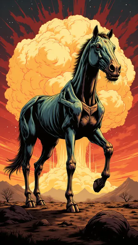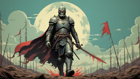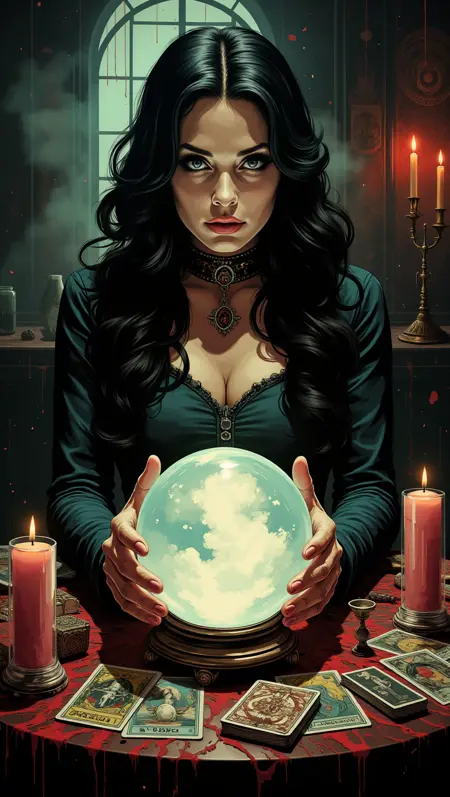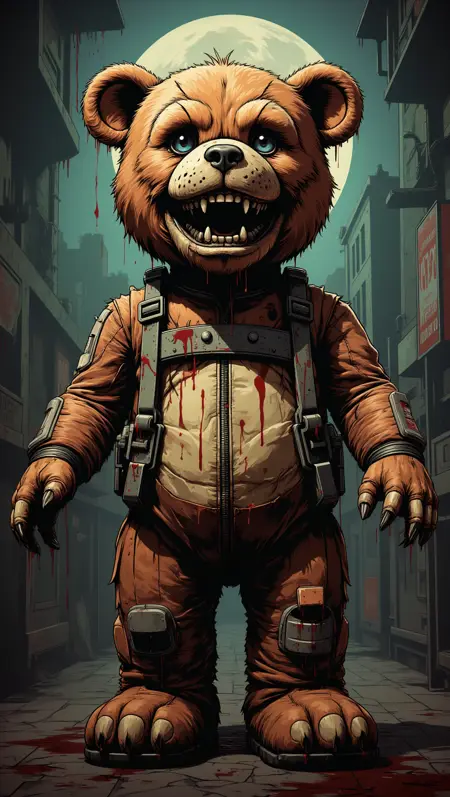 "The Impact" is defined by its bold and intense visual presence, featuring striking graphic elements and saturated colors. It draws inspiration from dark comic aesthetics and horror illustration, creating a dramatic and unsettling atmosphere through high contrast, sharp lines, and vivid, often surreal imagery. This style aims to provoke a strong emotional response, using exaggerated details and a sense of distortion to amplify the intensity of the scene.