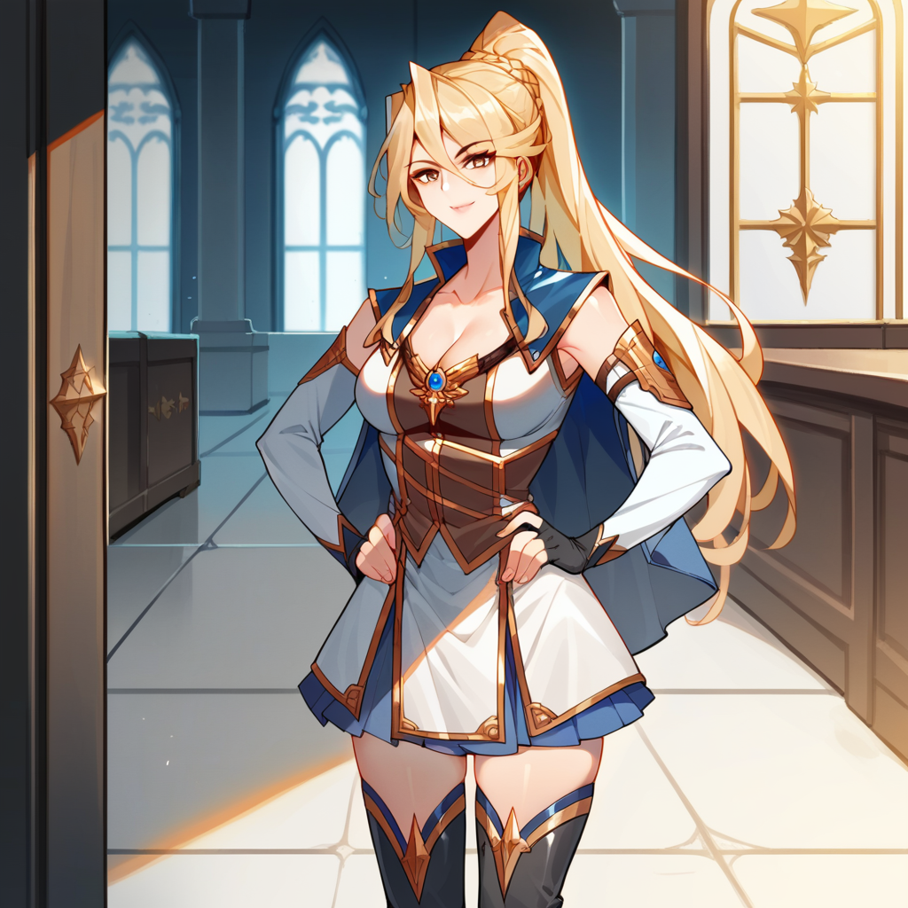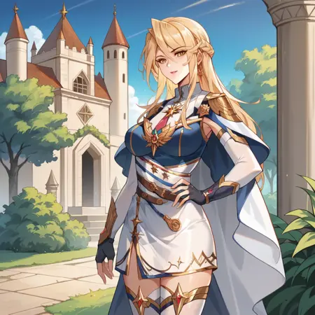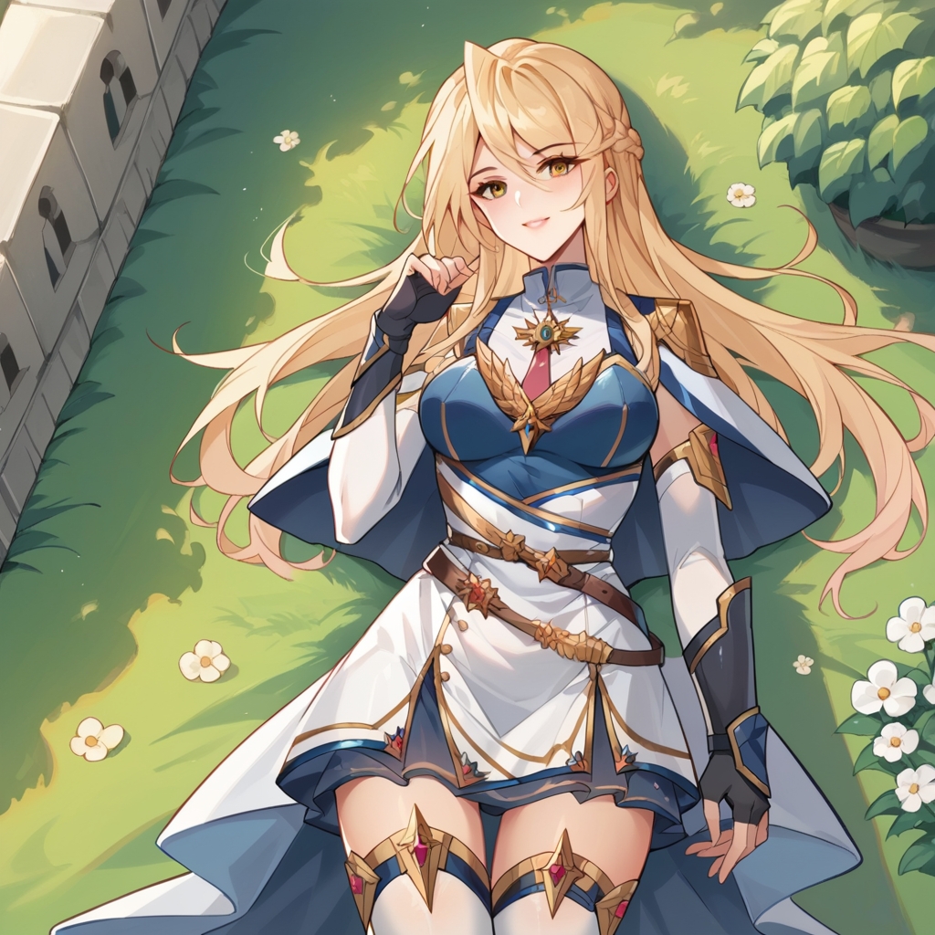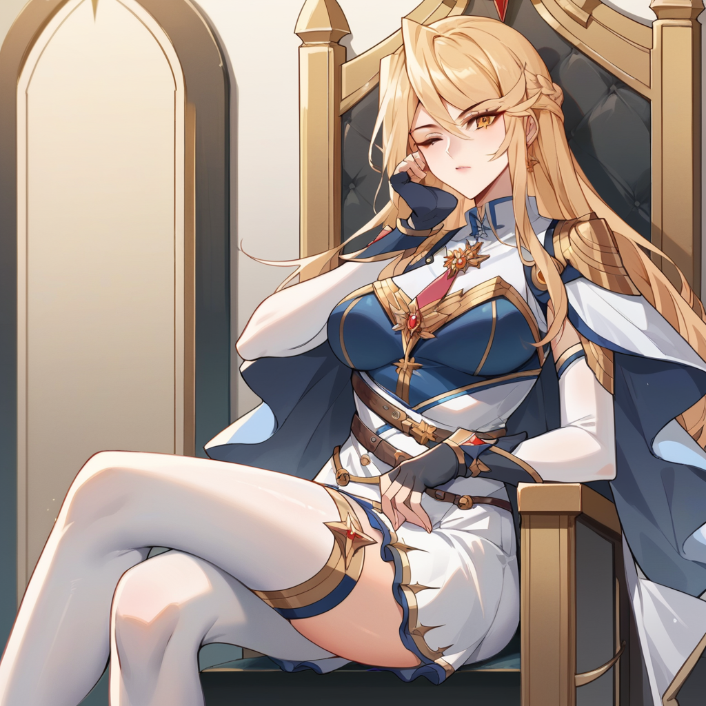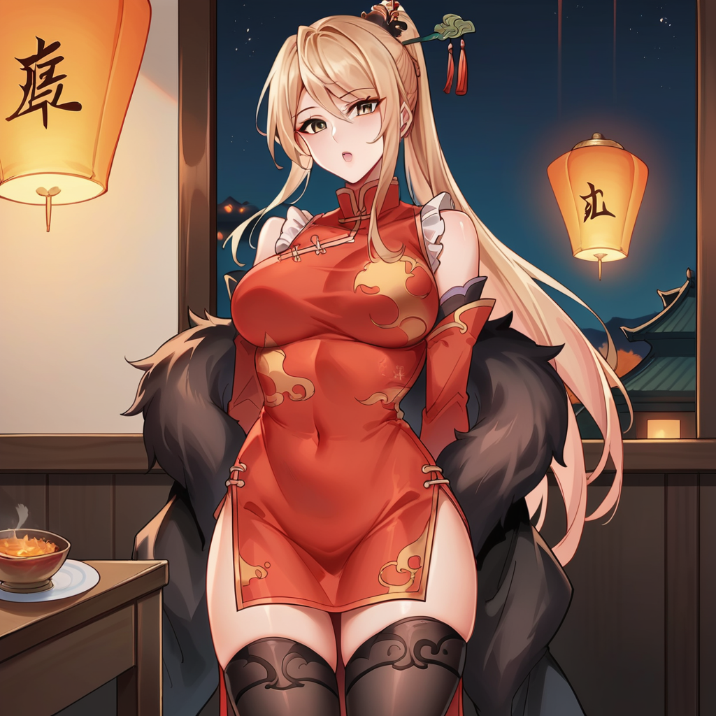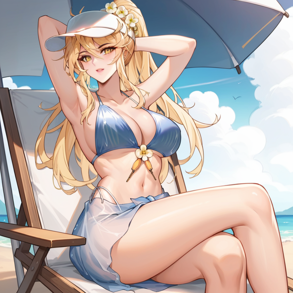 免責事項: 一応明確にしておきます。デフォルトの衣装はやや一貫性に欠けることがあります。正しいドレスの見た目は、両側が白で中央が茶色です。なぜかAIはこのようなツートーンのドレスデザインに苦戦するようです。(もちろん、私のスキルの問題かもしれません。)同じ不整合の良い例としては、私のAzur LaneのネルソンのLoRAと彼女のデフォルト衣装があります。