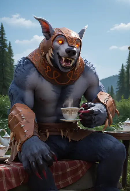 강화 태그: 송곳니, 긴 발톱, 빛나는 눈, 주황색 눈, 긴 귀