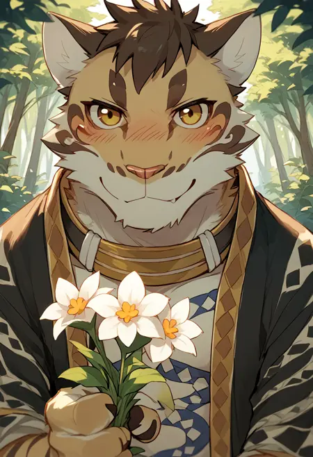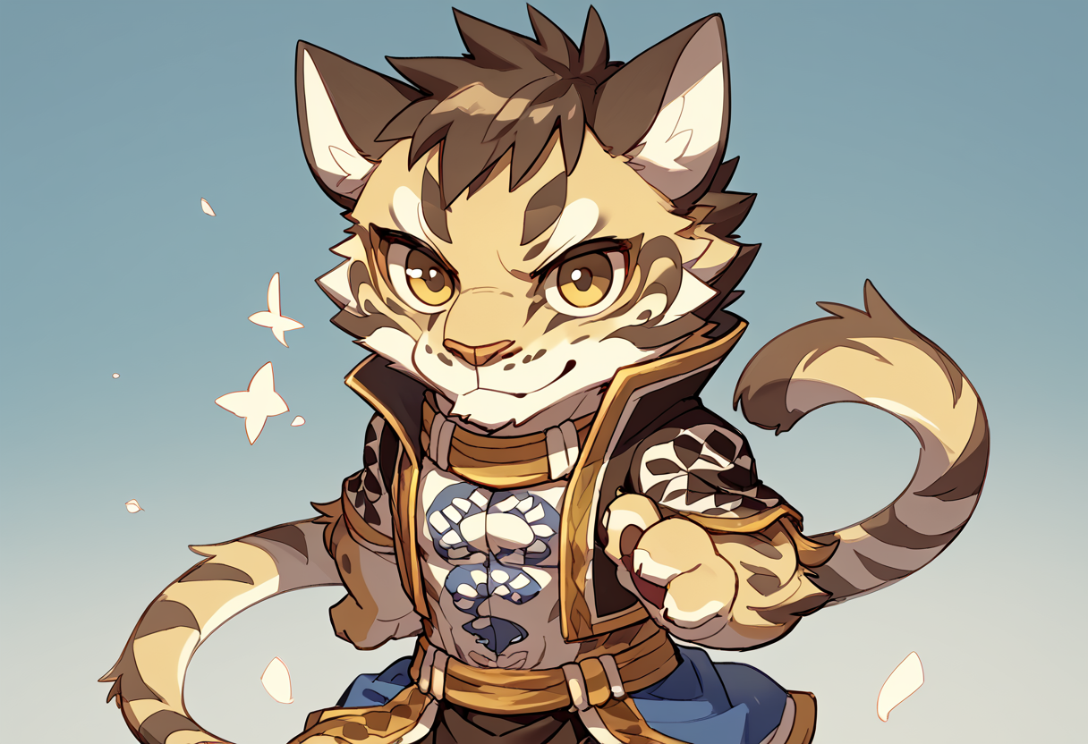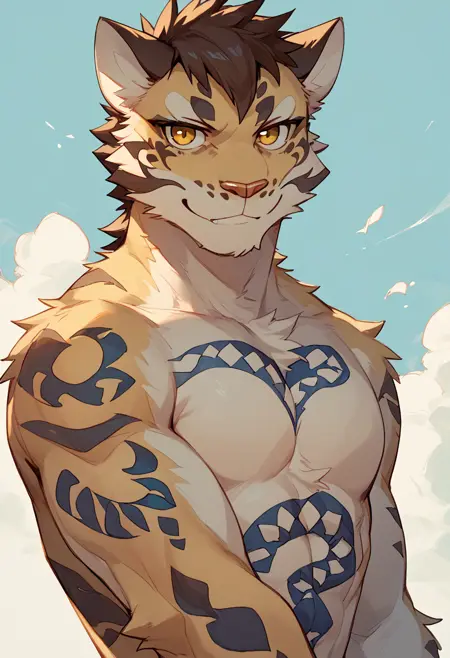 Illustrious: best quality, amazing quality, very aesthetic, absurdres, newest, likulau, nekojishi, cl0uded_le0p4rd, furry, 1boy, solo, muscular, fingerless gloves, ...your tags...