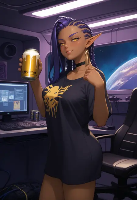 클로이의 전사이자 외인인 Elaisha "Ela" Sorn, Studio FOW의 게임 "Subverse"에서. 1.0 가중치에서 가장 잘 작동합니다. Pony Diffusion V6 XL에서 학습되었습니다. 요청 양식