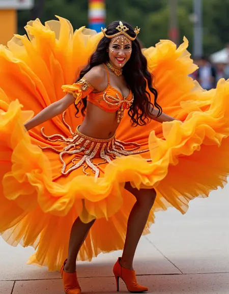 此 LoRA 捕捉了狂欢节的活力与多彩精髓,生动呈现了游行、服饰和街头庆祝的热闹氛围。它强调浓郁饱和的色彩、动态的运动感以及精致的服饰细节,非常适合创作充满欢乐、音乐与节日混乱的场景。该 LoRA 在渲染身着服饰的舞者特写和繁忙街道的广角镜头方面表现尤为出色。