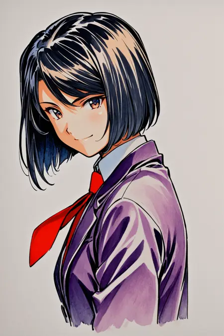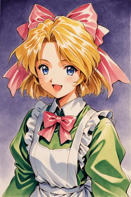 The overall effect is closer to the hand-painted retro style of Kosuke Fujishima.