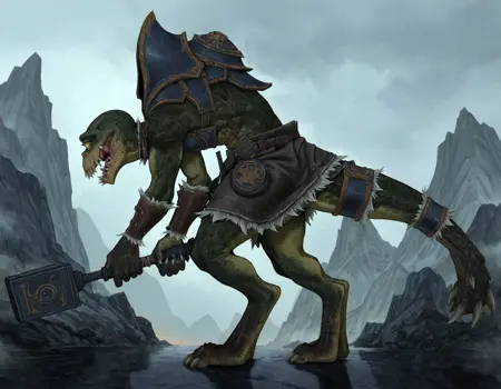 FimirWarrior, cyclops, yellow eye, monster, scales,