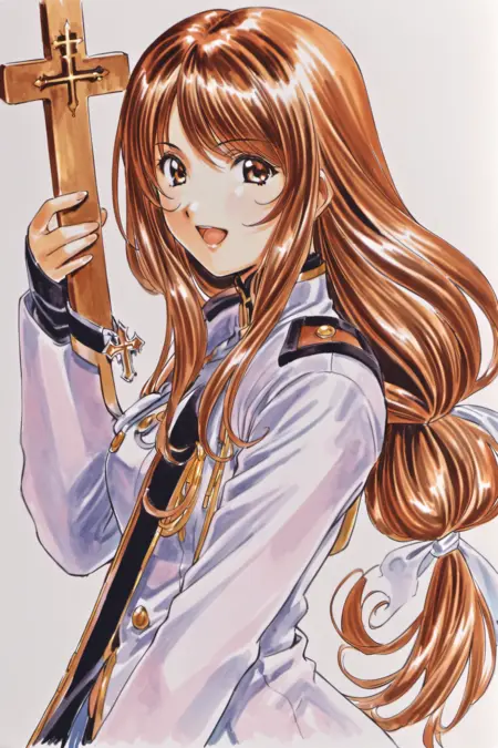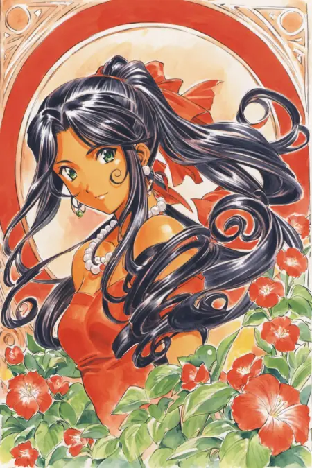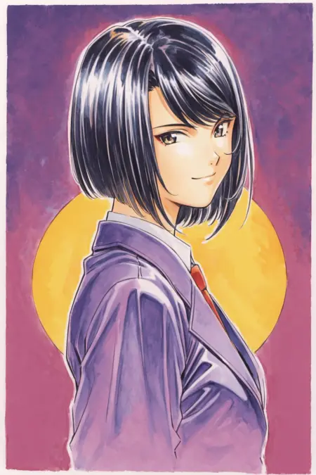 The overall effect is closer to the hand-painted retro style of Kosuke Fujishima.