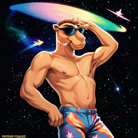 彼を最良の結果で生成するための最適なタグ:Joe Camel、Camel、茶色の毛、サングラス