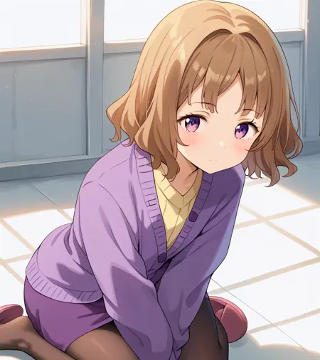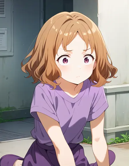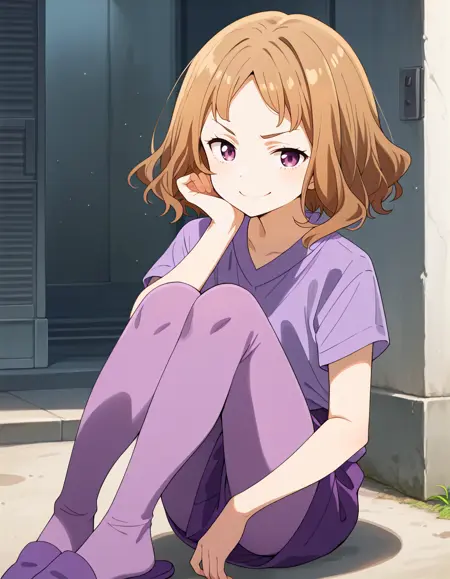 Her eyes are purple in color, but taggers judge them as brown eyes.