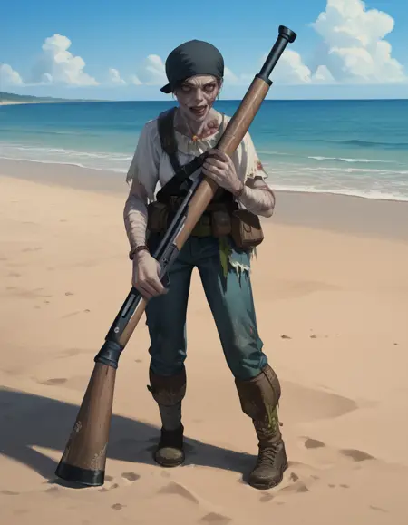 ZombiePirate, sword, flintlock pistol, asymmetrical dual wielding,