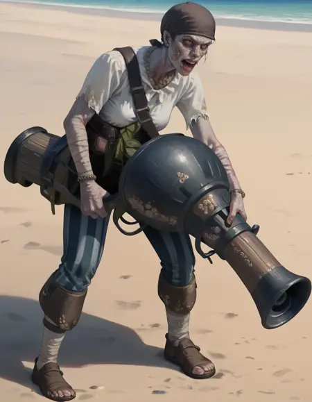 由溺亡水手及其他海上不幸者的尸体复活而成的僵尸海盗,效忠于大洋上的神秘僵尸召唤者海军上将,构成不死海盗大军的主力。他们身披生锈腐蚀的短剑与长柄武器,受召唤者邪恶的恐惧咒语操控,既能胜任水手职责,又具备战斗能力,是海盗活动的理想人选。