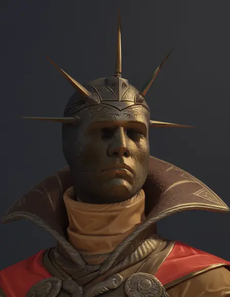 BalthasarGelt, helmet, no eyes, holding staff,