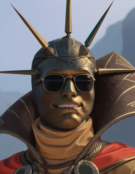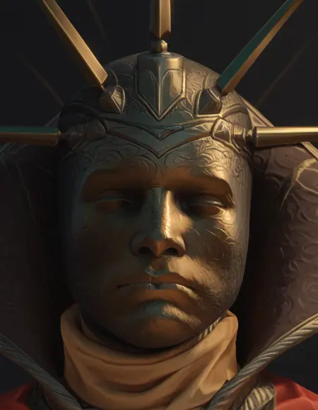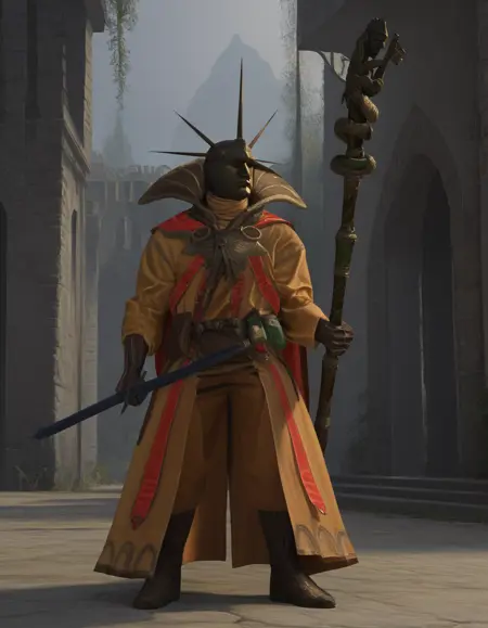 BalthasarGelt, helmet, no eyes, holding staff,