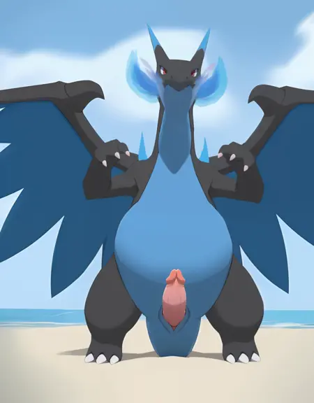 Related words : black skin, grey skin, blue skin, red eyes, brown eyes, bright pupils, white pupils, green skin, tusks, fangs, fangs out, fang out, claws, dragon boy, dragon tail, flame-tipped tail, flame, blue fire, breathing fire, spread wings, dragon wings, blue wings, red wings, no humans, monster boy, pokemon (creature), shiny pokemon, mega_pokemon, charizard