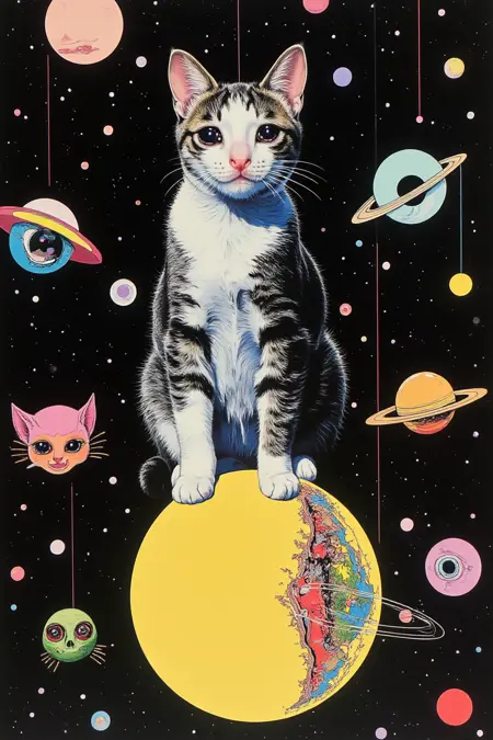 이 LoRA는 초현실주의적이고 팝 아트적인 미학에 부합하는 다양한 주제에 적용할 수 있습니다.