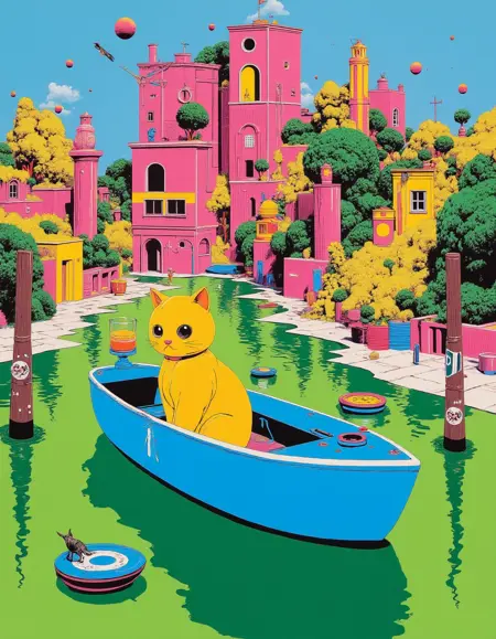이 LoRA는 다양한 꿈같은 배경에서 초현실주의와 팝 아트 스타일을 융합한 장면을 생성합니다.