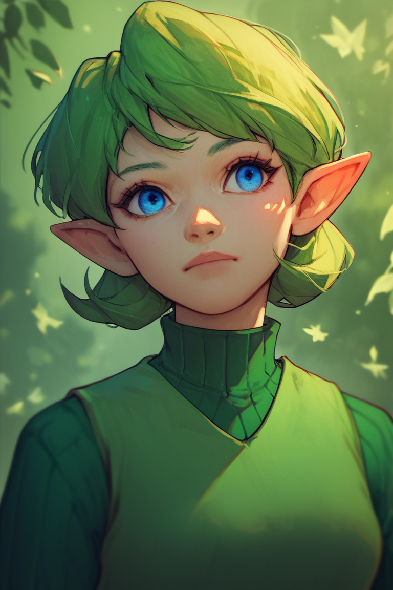 Base look: ootsariapdxl, green hair, short hair, blue eyes, pointy ears
