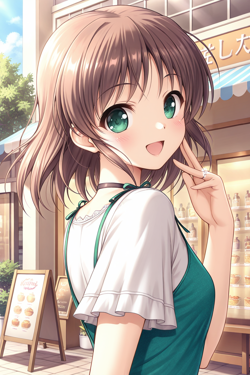 asagiri mai, green eyes, brown hair, bangs, sidelocks, medium hair, hair down,风格变换 (style change) ※ 请将