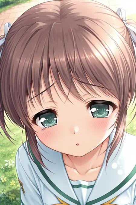 blush, :o, looking at viewer, open mouth, parted lips, raised eyebrows, sad, tearful, tears