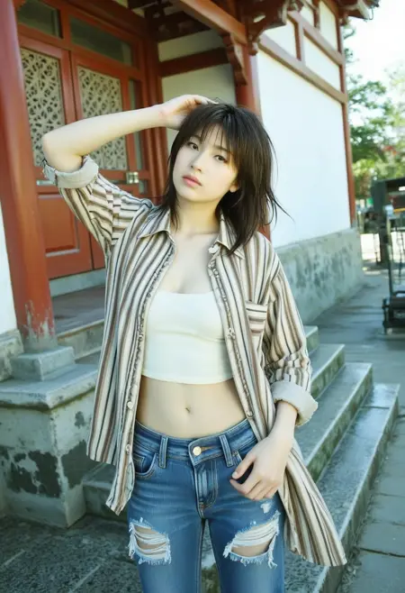建议附加提示词:film gravure, 2000s film Japanese gravure photography style, Professional analog film photo, film grain, depth of field