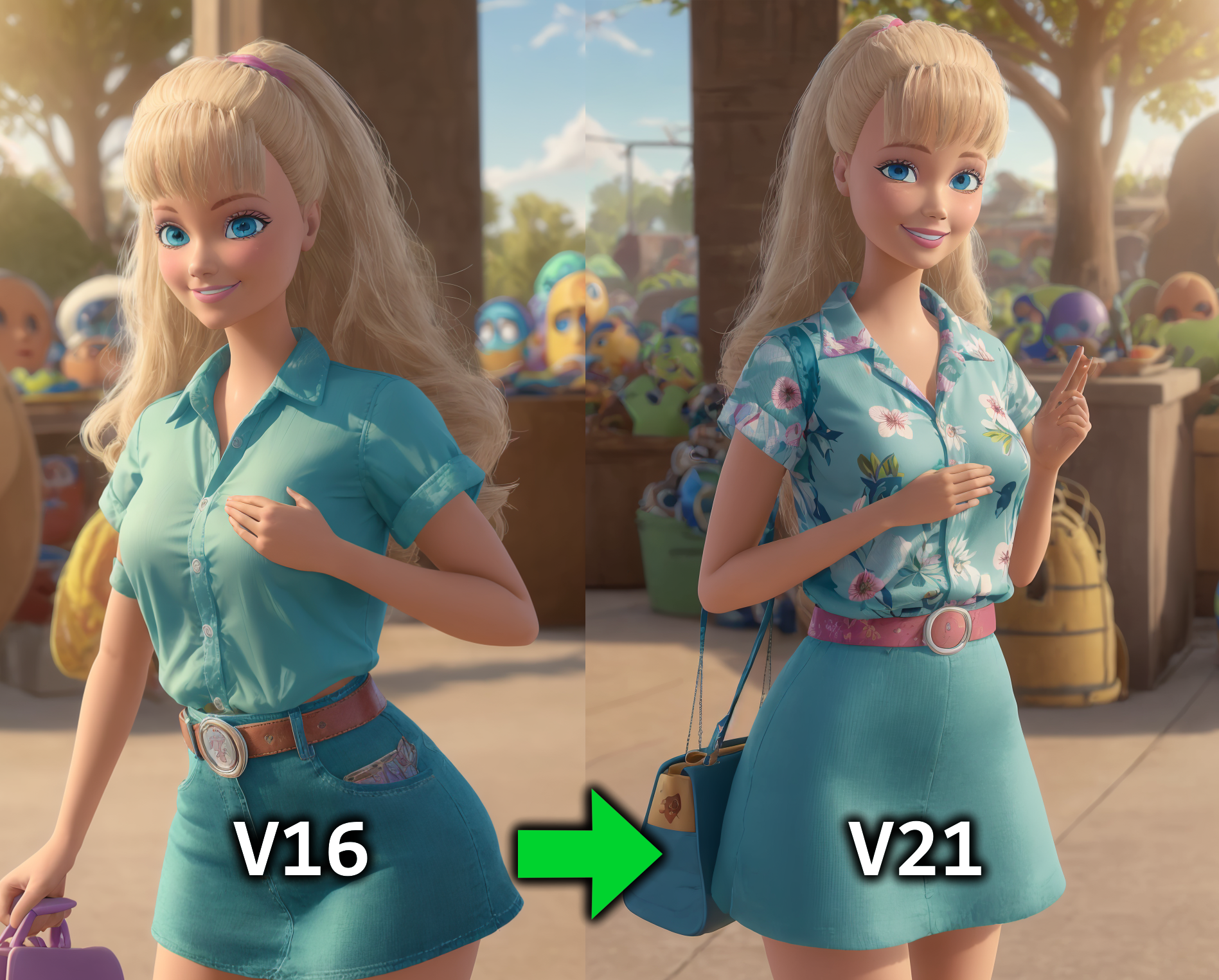 Barbie from the film Toy Story 3 and Hawaiian Vacation.