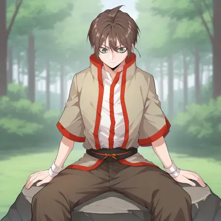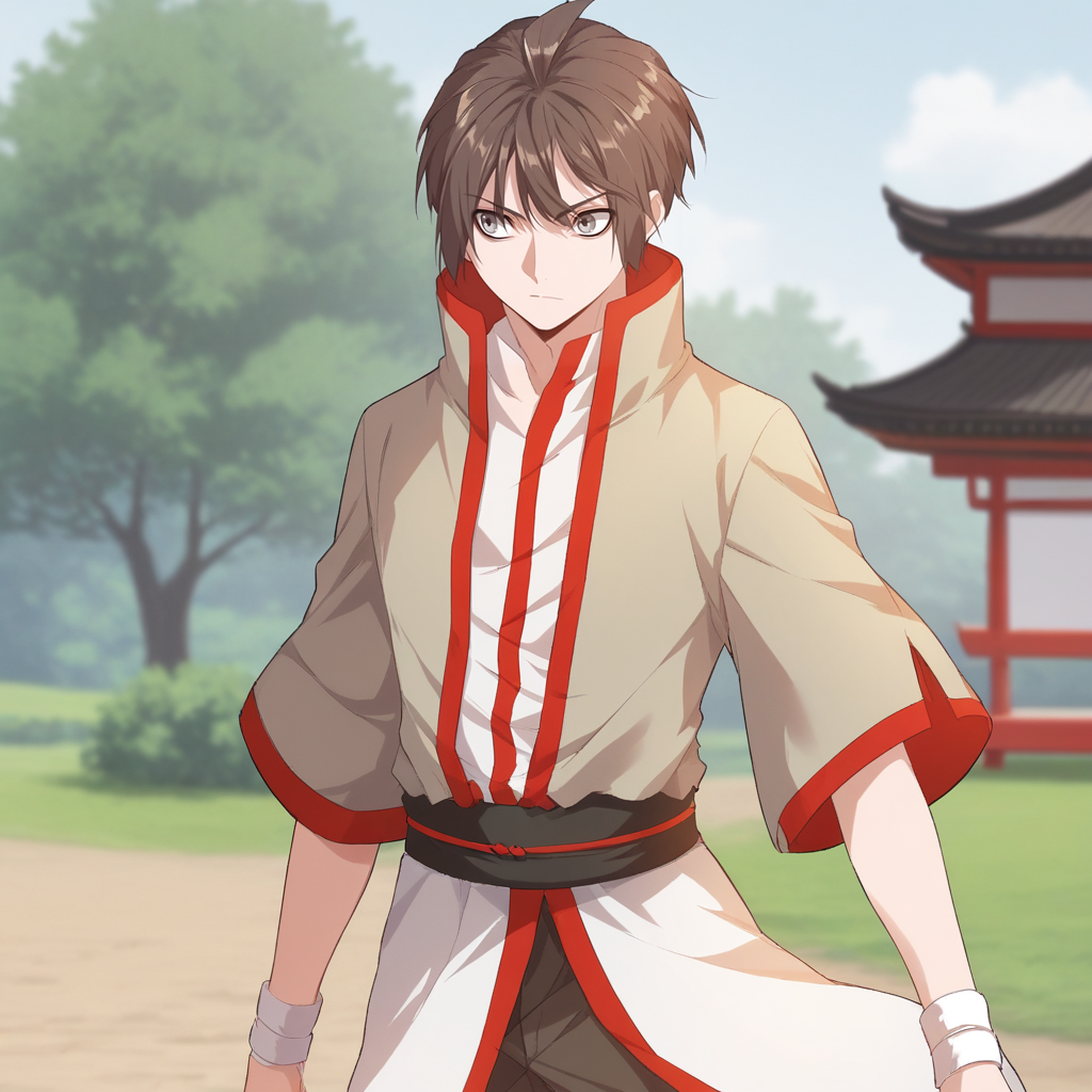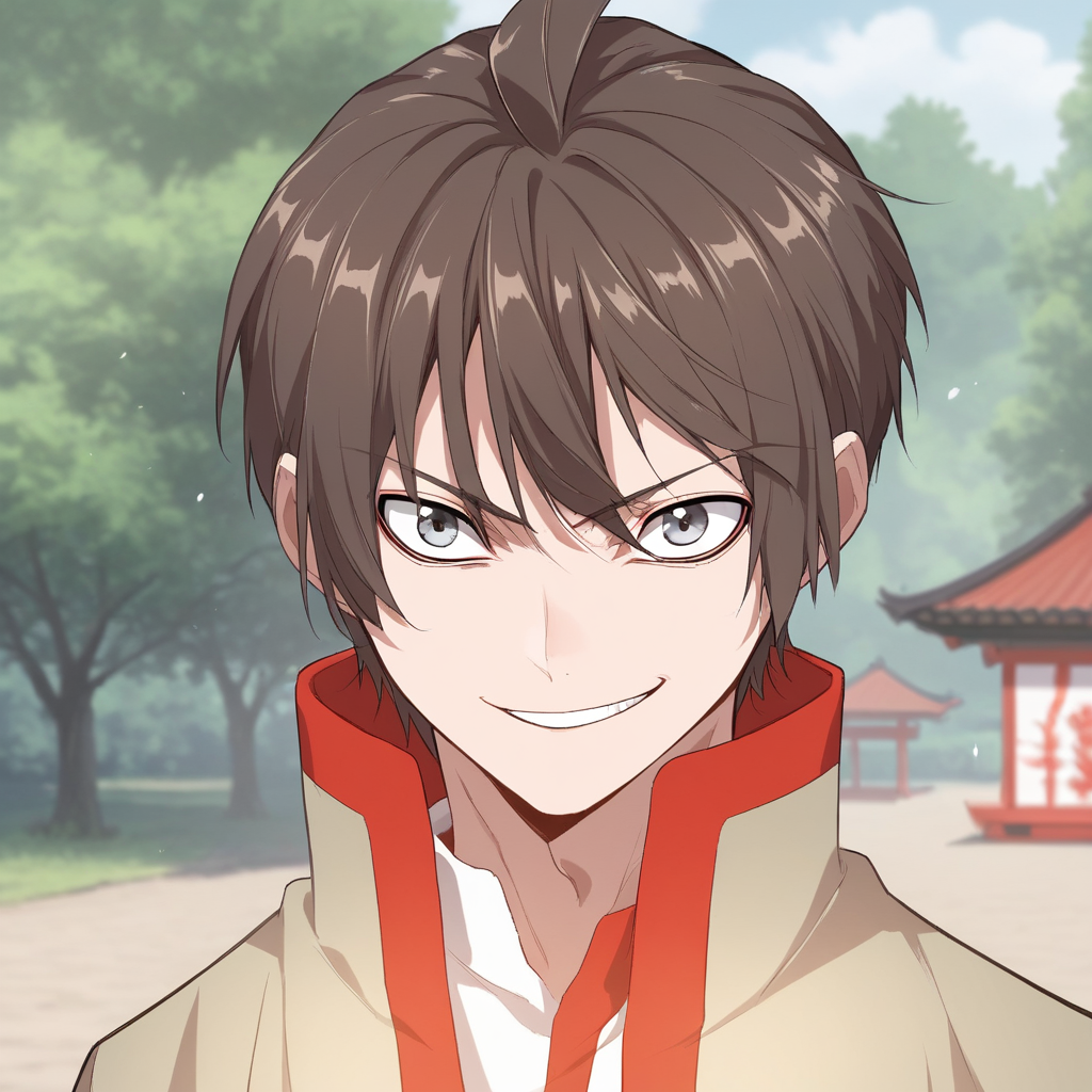 ZhuoYi-fan, 1boy, solo, brown hair, short hair, grey eyes