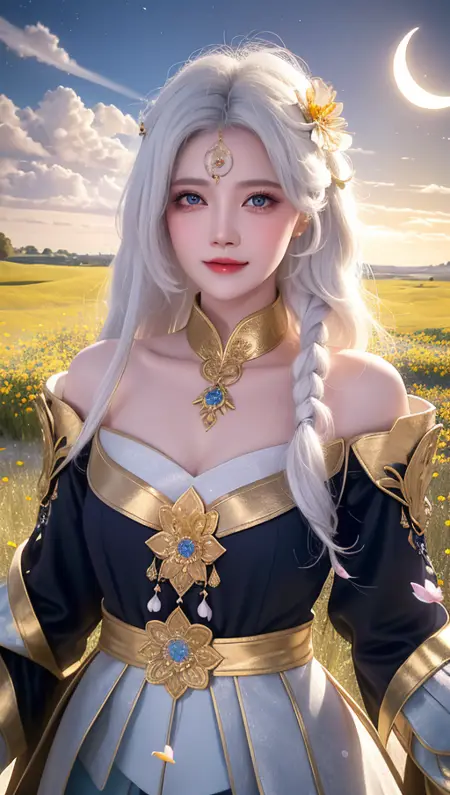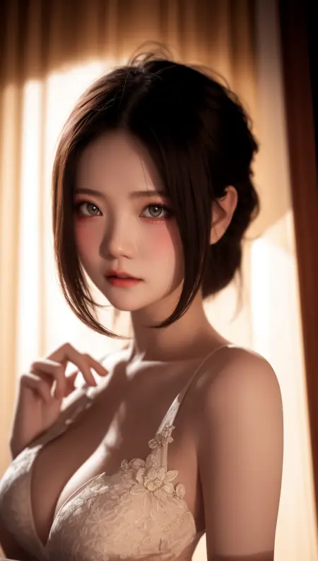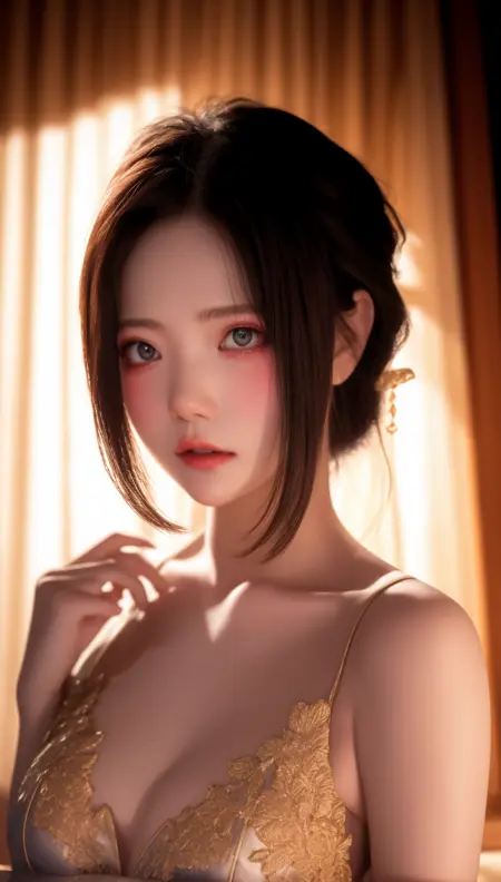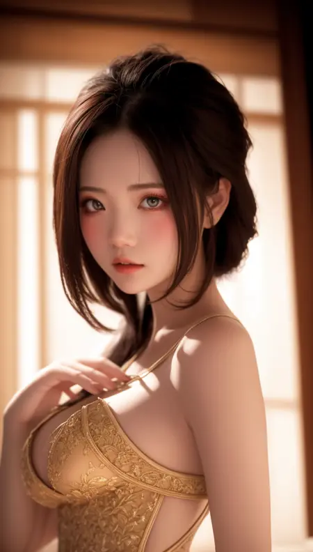 杰作,最佳质量,最佳插画,HDR,精美细节,复杂细节,细致场景,戏剧性光线,最佳阴影,1位女性角色,18岁,中等胸围,穿着超细致礼服,皮肤纹理细致,丁达尔效应