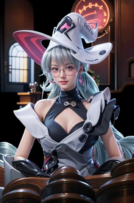 提示:Airi 黑魔法师,1名女孩,单独,长发,极长发,绿发, Aqua 发,刘海,双马尾,帽子,女巫帽,白色头饰,耳环,注视观众,紫色眼睛,微张的嘴唇,微笑,胸部露肤,胸部切口,乳房,连衣裙,裸露肩膀,珠宝,手套,过膝袜,单只过膝袜,白色过膝袜,大腿绑带,拉链,拉链拉环,紫色鞋履,高跟靴