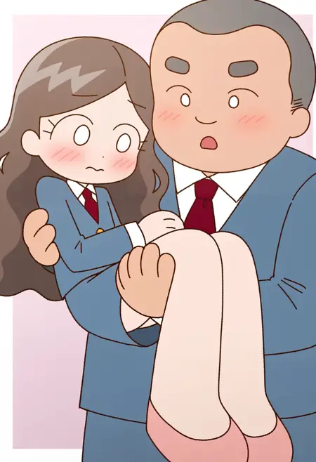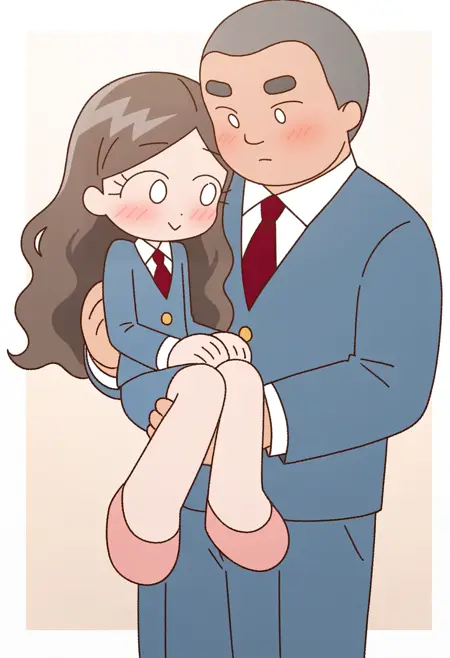 Big Boy: b1gboy, grey hair, thick eyebrows, small eyes, shaved head, plump, school uniform, blue jacket, collared shirt, red necktie, blue pants, grey footwear