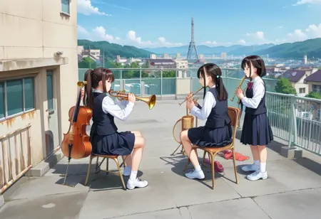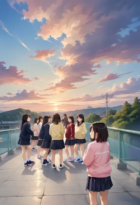 这是一个可能描绘出类似日本学校屋顶风景的LoRA。