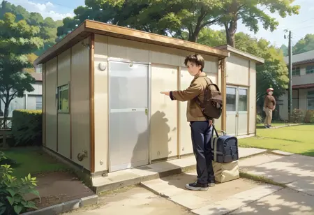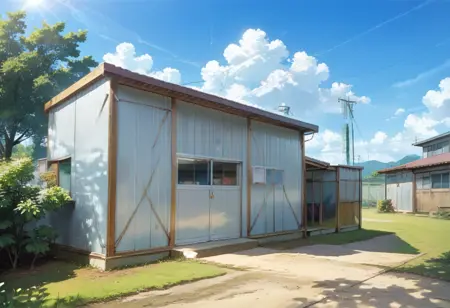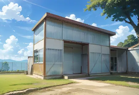 这是一个可能能够描绘出日本学校操场角落常见类似体育馆仓库风格风景的LoRA,或许能画出室内场景和外观类似预制体育馆的景象。