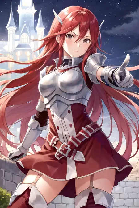 权重约0.8效果不错。触发词为“cordelia fe”。添加“盔甲”、“护胸甲”、“大腿靴”、“发饰”、“吊带袜”、“连衣裙”和“裙子”有助于生成她默认的服装。