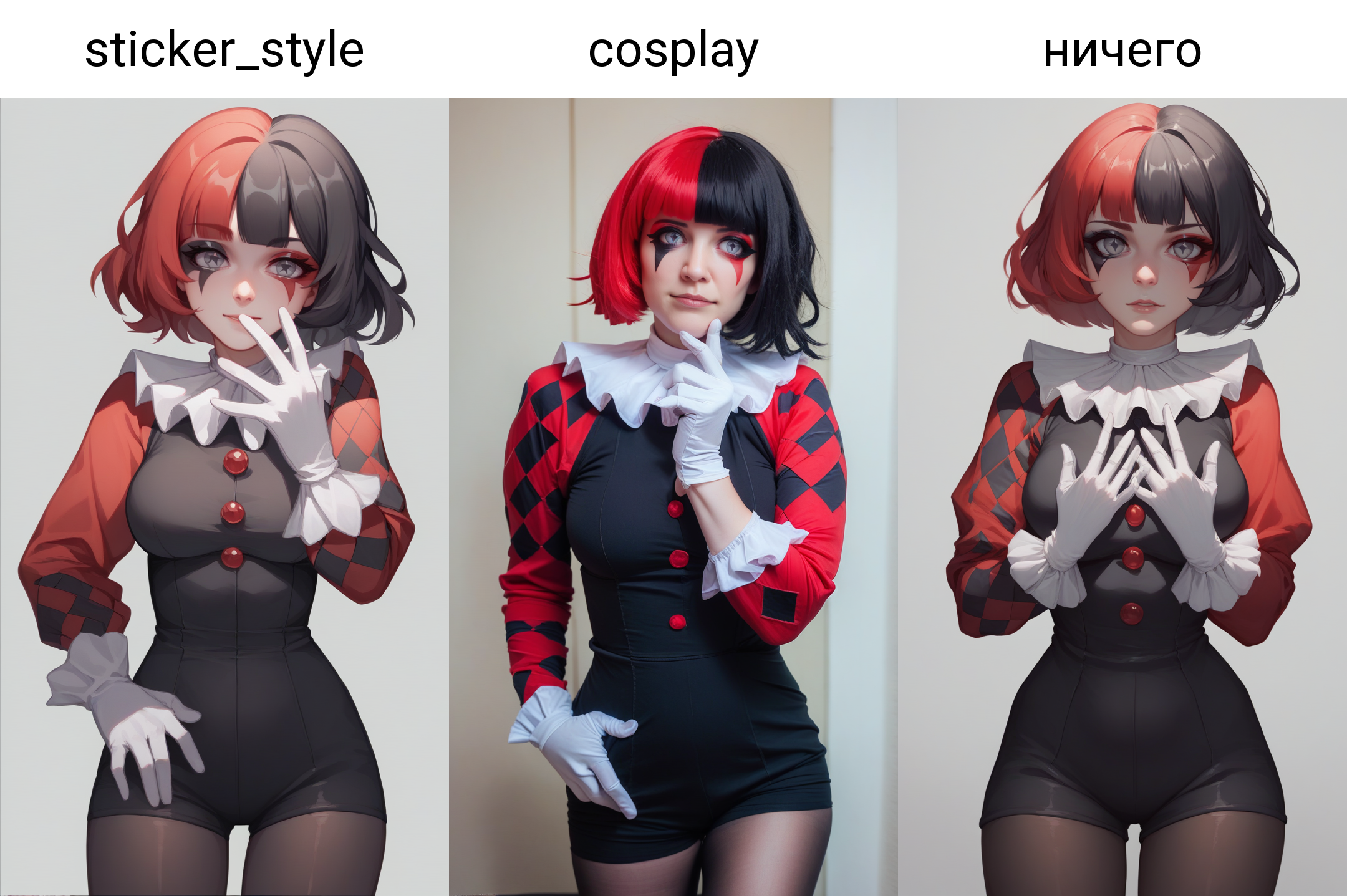 style_sticker 与 cosplay — 前者生成贴纸风格图像,后者生成写实风格图像。当分辨率超过 1024 时,贴纸风格可能表现异常。建议在负面提示中尝试加入其中之一。