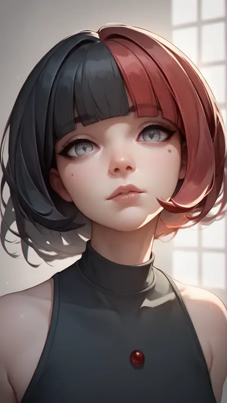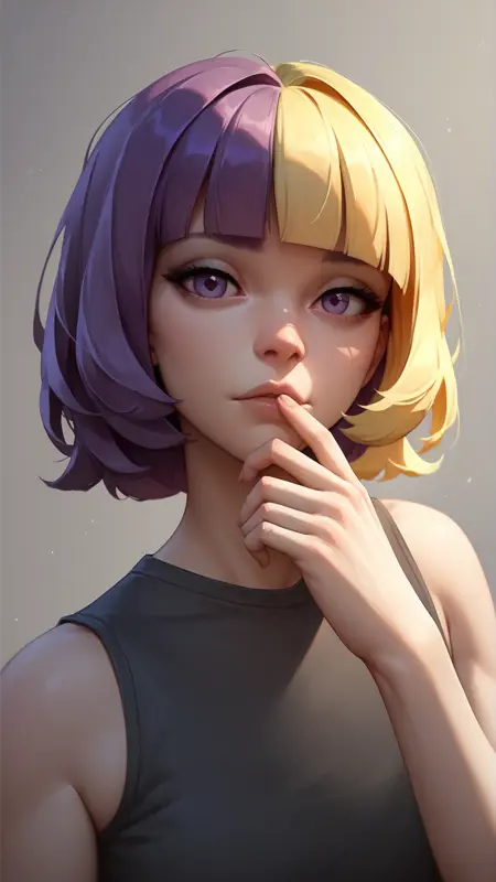 split-color hair — 实现发色清晰的对半分割。应与 color1 hair, color2 hair 一起使用。偶尔会失效生成混合发色,但总体表现良好,有时会出现镜像效果。